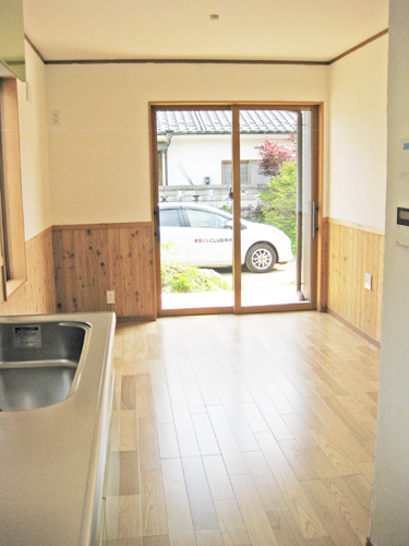 13.LDKの様子 ダイニングからリビング方向を見た様子です。突き当りは、和室になり、畳が敷かれます。広々としたリビングになりました。 |
