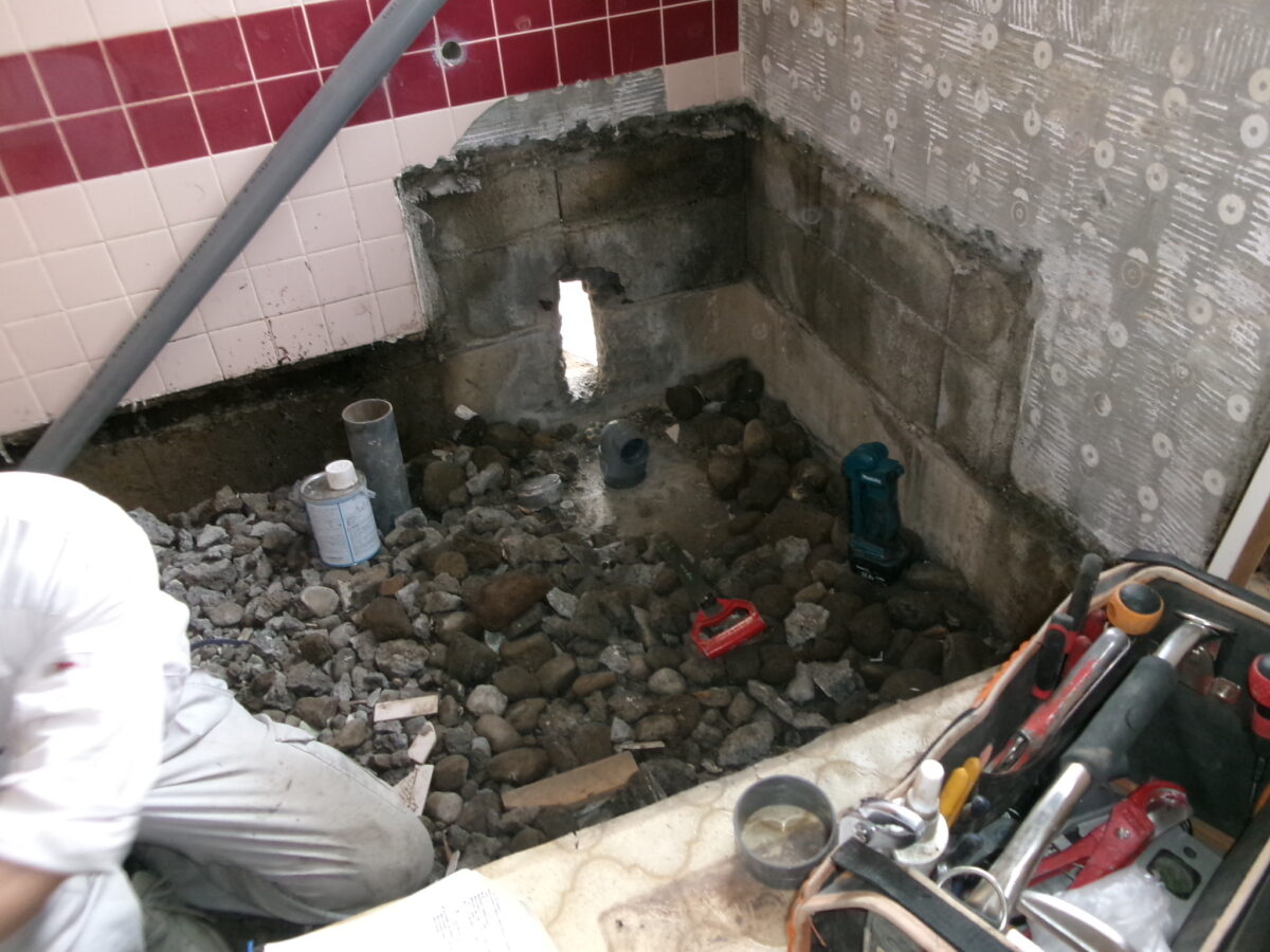 浴室の解体をしたところ、予想以上に柱が腐食していましたので、柱の補強作業を行ってから下地を施工しました。