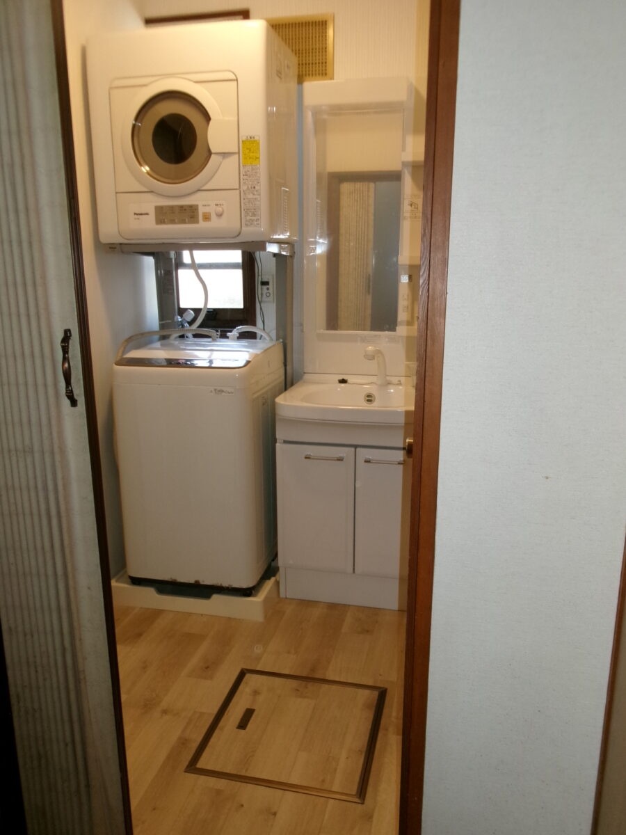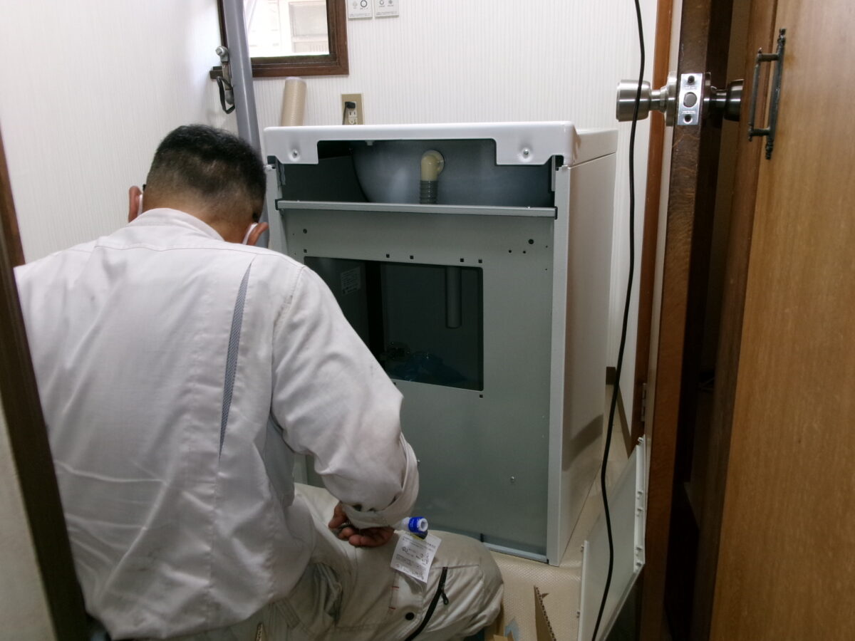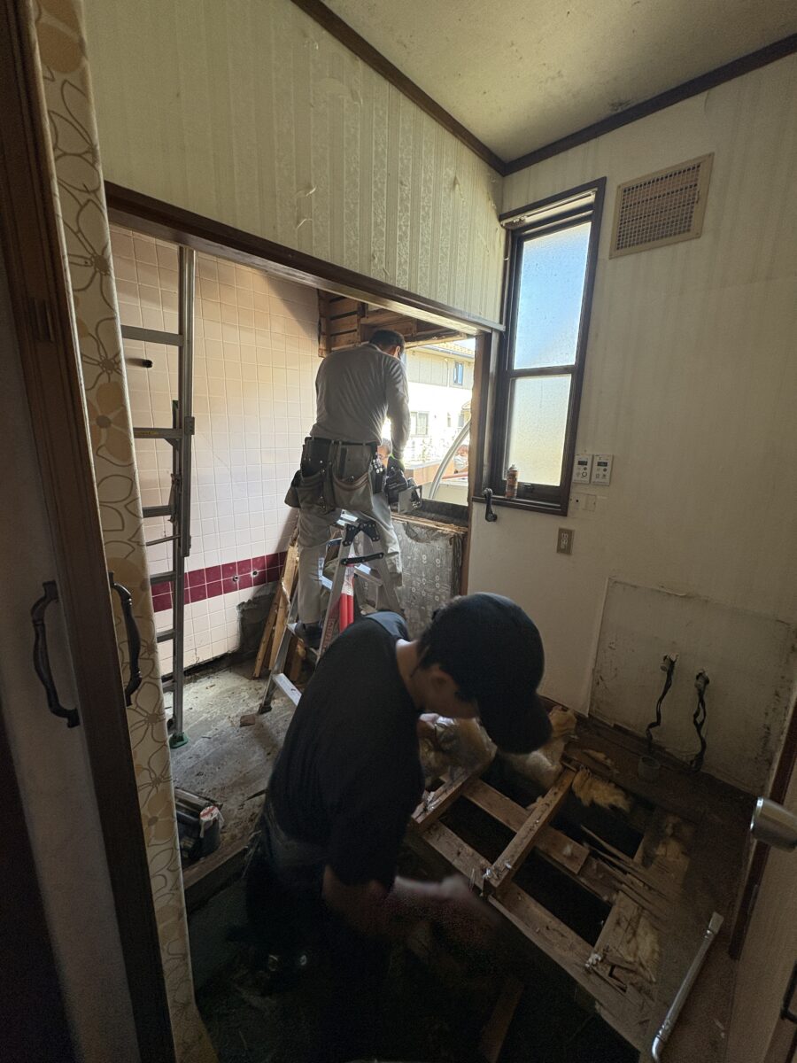 洗面所の床下も一部腐食があり、合わせて補強して施工しました。解体から設置までには様々な職人さんたち職人さんたちの手が入って仕上げます。