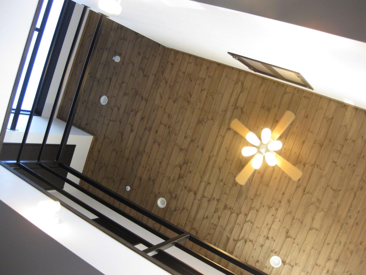 リビングの上は吹き抜けで、開放感を得られることももちろんですが、2階の各部屋への出入りもリビングからわかるようになっており、常に家族の存在を感じることができます。1階を間続きにしたり、梯子階段にすることで、リビングに広がりを持たせる工夫が見られます。
