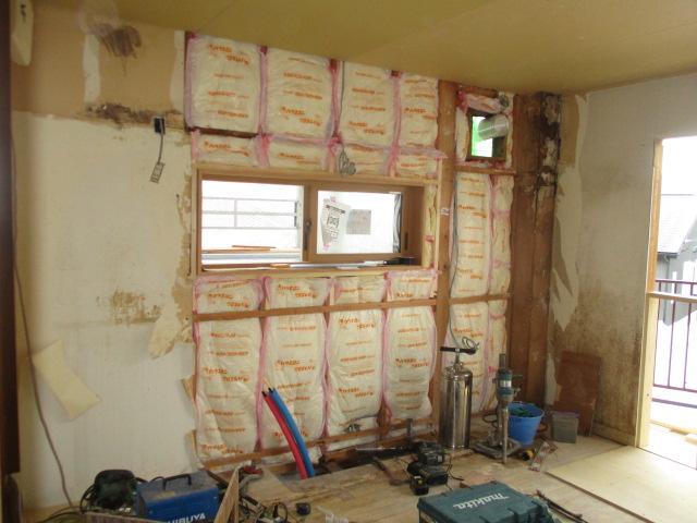 既存のキッチンを撤去して断熱材を厚いものに入替えます